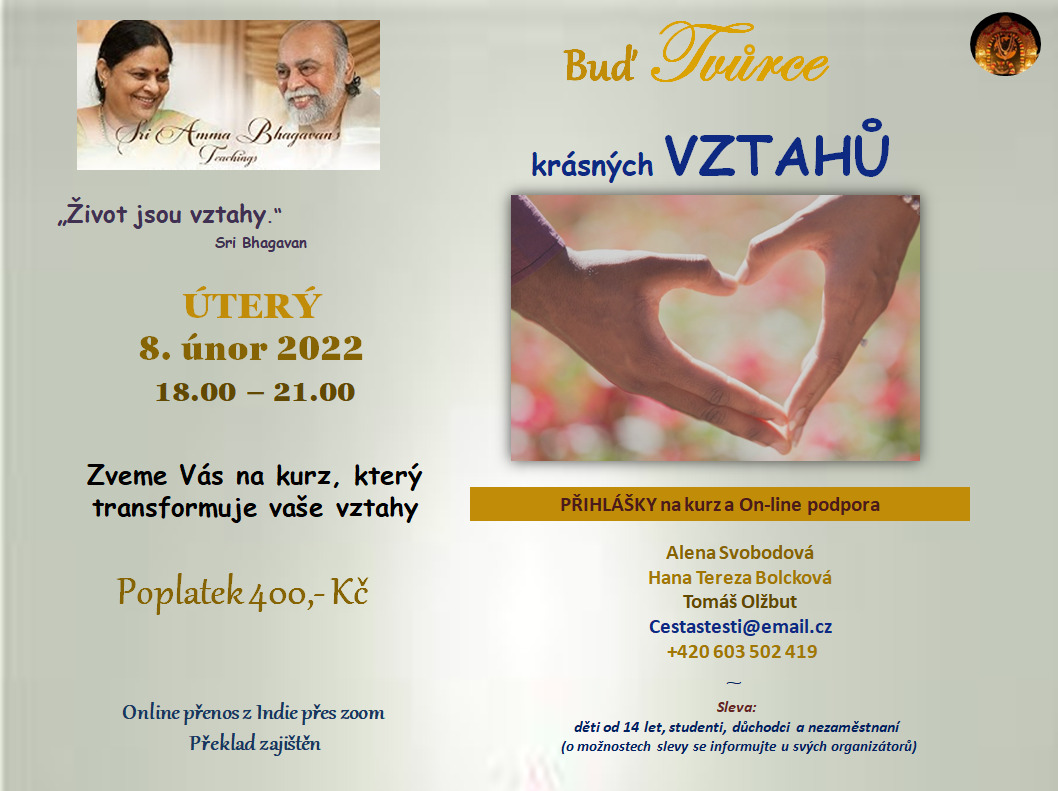 On- line kurz Buď Tvůrce – zaměřený na vztahy Datum konání 08/02/2022 18:00 - 21:00 Přidat do kalendáře Download ICS Google Calendar iCalendar Office 365 Outlook Live Místo On-line kurz online kurz , z vašich domovů mapa není k dispozici Přihlašovací formulář: https://forms.gle/…6g9
